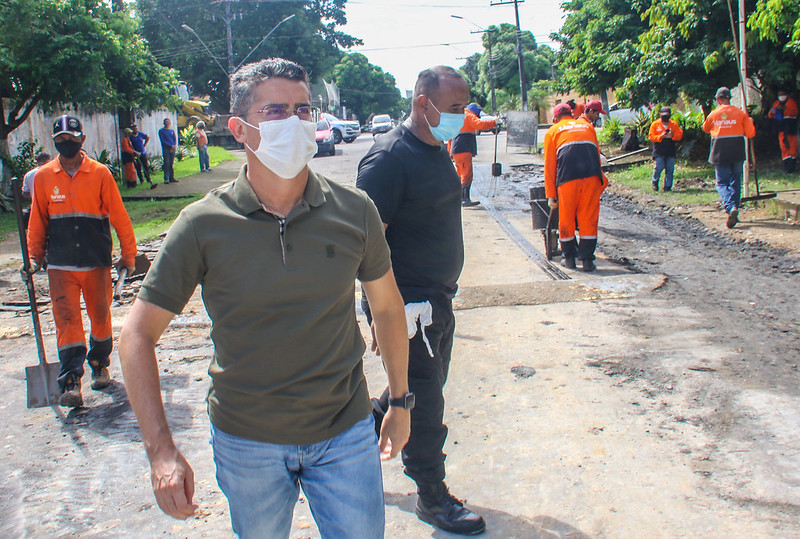 O prefeito de Manaus, David Almeida, acompanhou o andamento de algumas das frentes de trabalho do pacote de “Obras de Inverno” que realiza, nesta sexta-feira, 14/5, operação tapa-buracos em diversos pontos do conjunto Parque das Laranjeiras, bairro Flores, na zona Centro-Sul da cidade. Ao todo, 61 ruas do bairro serão contempladas até a conclusão do programa.