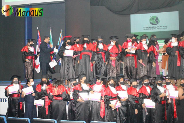 A Defensoria Pública do Estado do Amazonas (DPE-AM), por meio do Núcleo de Promoção e Defesa dos Direitos das Mulheres (Nudem), realizou na noite desta segunda-feira, (01/02) , a formatura do curso Defensoras Populares. As mulheres participaram em 2021 da primeira edição do projeto, que é gratuito e tem o objetivo de capacitar lideranças populares com educação em direitos da mulher e direitos humanos, principalmente aquelas que lidam com a população em situação de vulnerabilidade. A cerimônia de formatura foi realizada no teatro da Faculdade UniNorte, na avenida Joaquim Nabuco, Centro de Manaus.