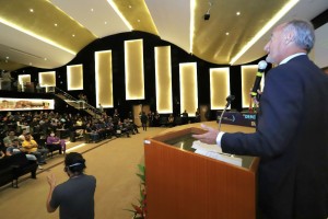 Durante a sua apresentação, o professor falou principalmente sobre as mudanças de realidade nos países imposta pelas diferentes alterações geopolíticas, além do aumento das desigualdades no mundo. “A diferença entre as nações ricas e pobres foi intensificada nas últimas décadas, ou seja, o modelo não intervencionista por parte do Estado está em decadência”, comentou o professor, ao citar a diferença entre atuação estatal e privada em temas políticos e sociais.